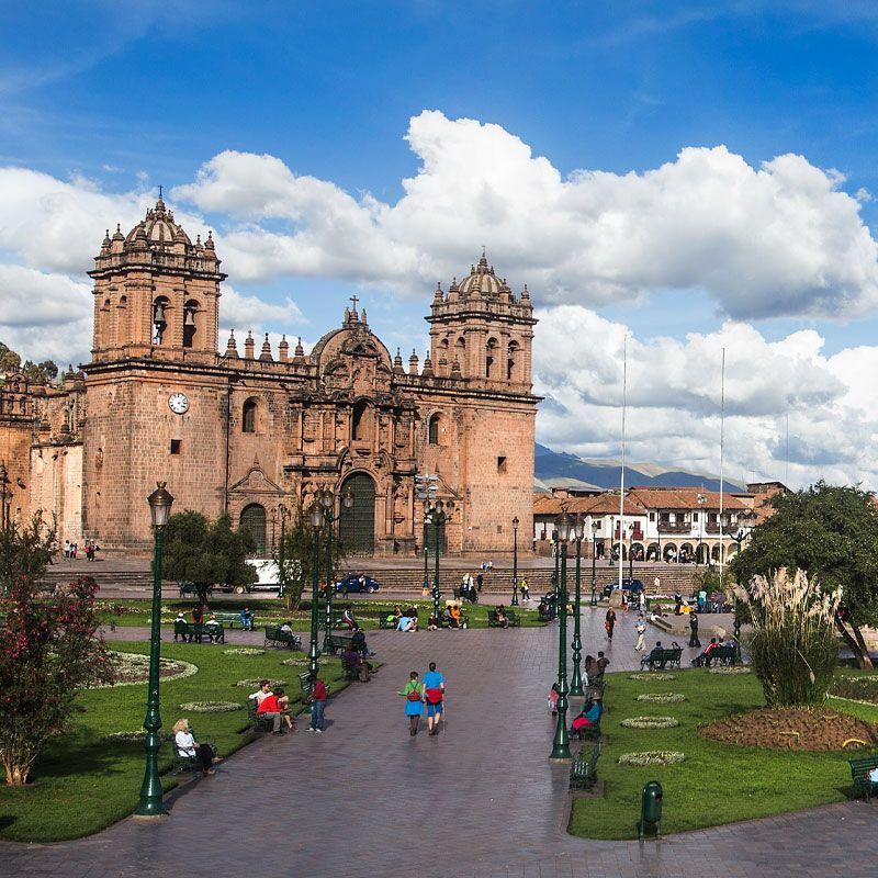 The Cusco Plaza de Armas or Cusco main plaza is a lively gathering place in the heart of Cusco. Here you’ll find the Fountain of Pachacuti, the Cusco Cathedral, storefronts, restaurants, and even McDonalds!