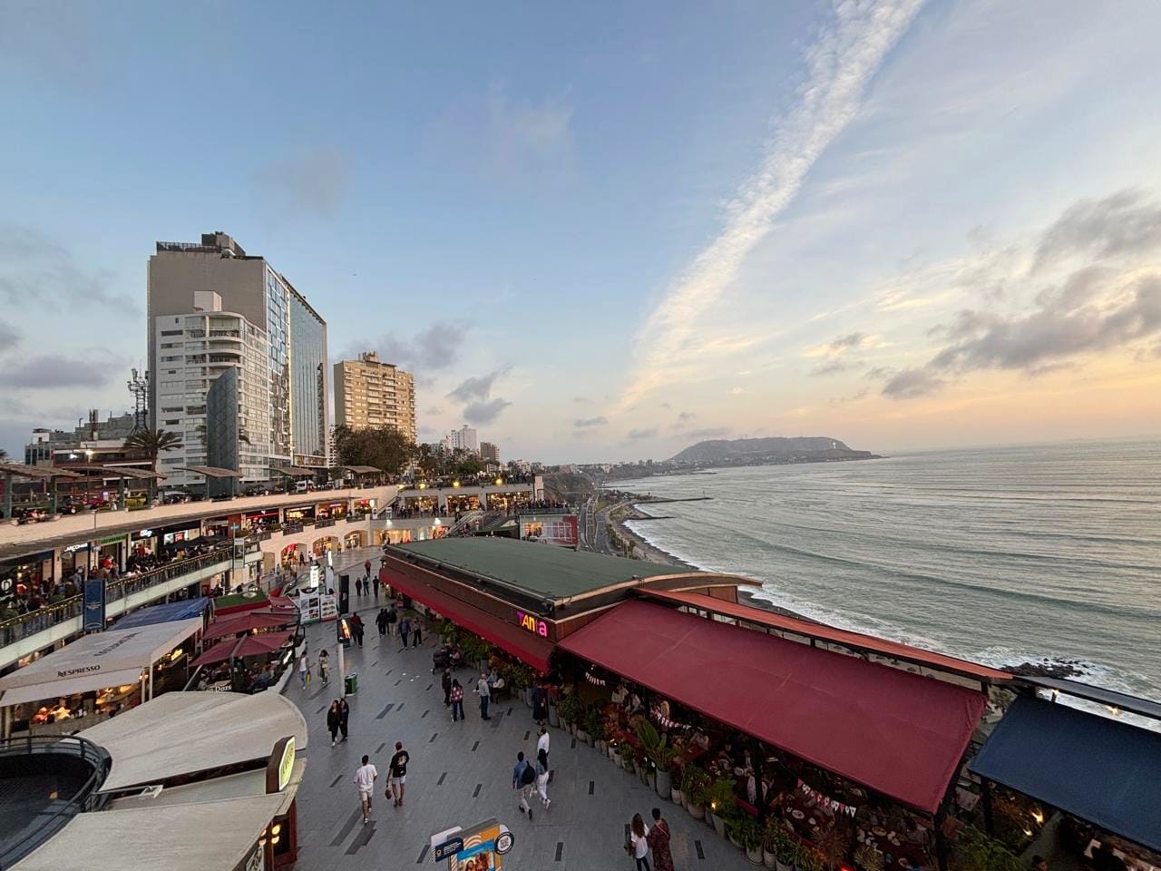 After a quick afternoon nap back at the hotel, we stepped out again for the evening. My dad had one important mission. Completing his daily 10,000 steps. Travel, but with routine intact. So we headed toward Larcomar, the famous cliffside shopping complex overlooking the Pacific. If I were a local, I could see myself coming here everyday. I must say I had never seen anything quite like it. A mall, right beside the ocean. It almost felt like the beach had politely asked the mall to join the waves. We watched the sunset from the coastal bluffs, the Pacific stretching endlessly below us.