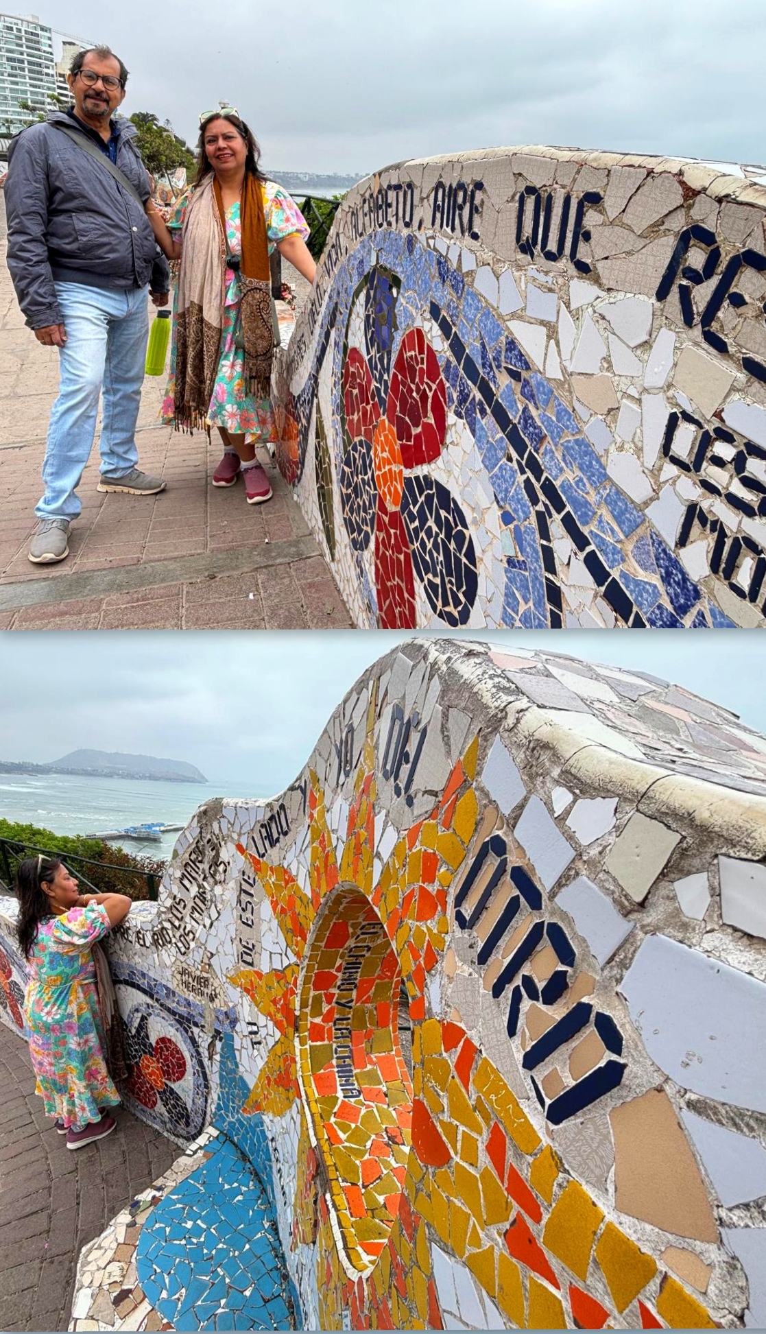 Somewhere along that walk we reached Parque del Amor, the famous “Love Park.” A mosaic-covered park overlooking the ocean, with a giant sculpture of a kissing couple sitting proudly in the middle. Apparently it’s Lima’s version of a romantic landmark. The same Beso Francés chain we had seen near Larcomar the previous night had a tiny café nearby, and the morning breeze coming off the Pacific made the entire stretch feel like the perfect place to waste time.