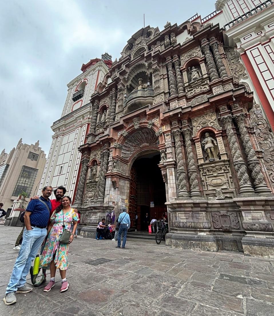 Technically Day 2. But the first real day of exploring. Our room was on the ground floor, and breakfast was almost unfairly convenient. The kitchen was literally right outside our room at El Tambo Uno, as if someone had placed a small breakfast corner there just for us. Coffee, bread, fruits. Miguel, our city tour guide for the day arrived right on time. Along with us was a Brazilian mother–daughter duo who had joined the tour SUV. Within minutes, introductions were done, seat belts clicked, and we were rolling out toward Lima’s historic center. The drive was interesting. The scenery kept changing every few minutes - Residential colony with lot of trees, A quick stretch of highway, an artsy district, then back to main roads and traffic again. It felt like flipping through different versions of the same city. As it was my second and parents’ first time in LATAM, I had a feeling that the historic center was going to be less of a “tour” and more of a vibe check.