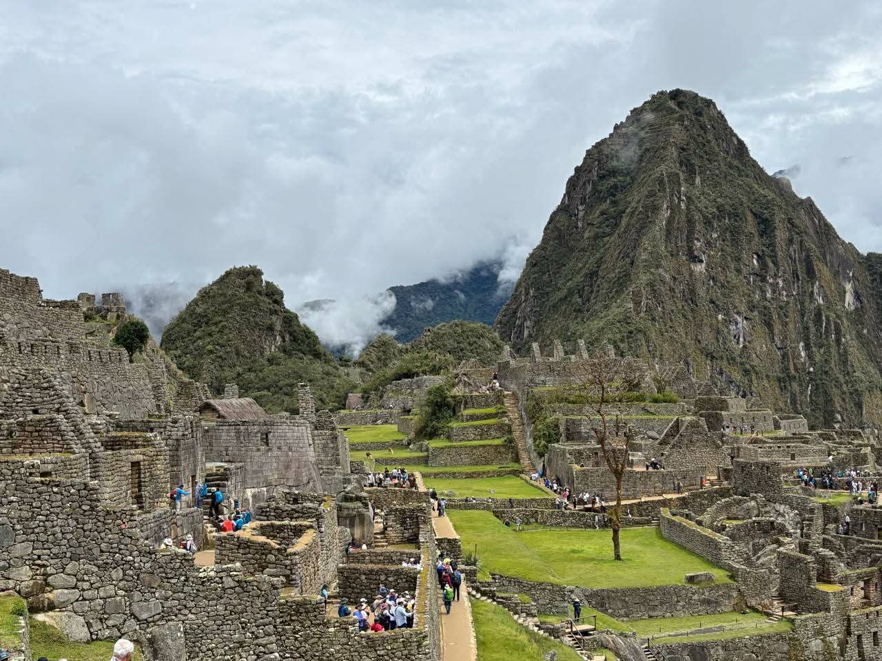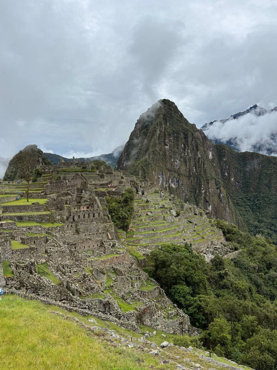 Wow, we reached the viewpoint! The one we had seen in photographs all our lives. Except photographs lie. They flatten the mountains. In reality, the valley drops dramatically below you, and the citadel sits along a narrow ridge surrounded by towering peaks. Behind the ruins rises Huayna Picchu, the iconic mountain that gives Machu Picchu its dramatic skyline.