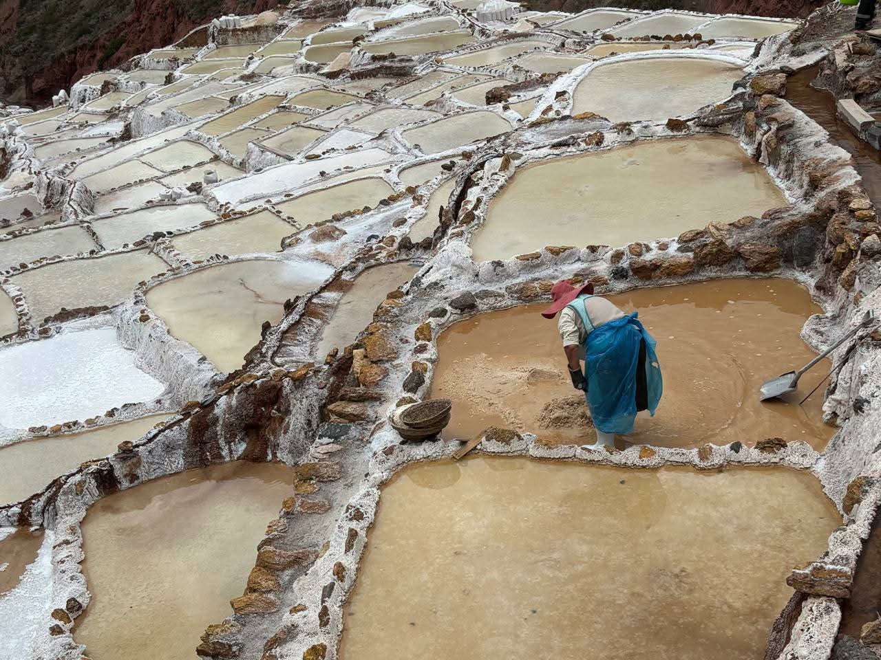 Maras was the first major stop. My Bollywood brain hadn’t stopped. Remember the scene from “3 Idiots”, where the bride “Suhas” was singing “moray aamoray” while shaving? “Moray aamoray Maras aamoray” was my entry song while entering Maras! The salt pans of Maras are one of those places that make you stop and say, “Wait… this is real?” Hundreds upon hundreds of white salt ponds step down the hillside like a giant patchwork of multi-color mirrors and chalk, fed by salty spring water that has been used here for a very long time. The system works by channeling mineral-rich water into shallow ponds and letting the sun do the rest. Families in the area have historically managed individual ponds, and the place still feels tied to community work rather than just tourism. It looked surreal.